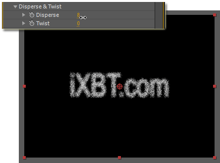Ну а теперь можно приступить к разбрасыванию камней, т.е. "распылению" нашей надписи. Делается это в ветке параметров Disperse & Twist.