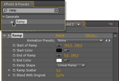 Теперь нужно применить к этому слою эффект Ramp со следующими настройками: