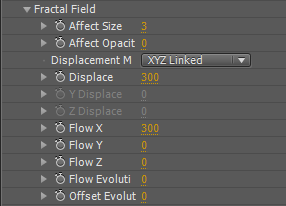 Но теперь видно: не хватает какой-то неразберихи, беспорядка. Уж слишком организованно и гладко эти частицы разлетаются, искусственно, в "жизни" так не бывает. Это легко поправимо: внести в сложившуюся ситуацию немного бардака нам помогут дополнительные параметры данного плагина. Находятся эти параметры в поле Fractal Field. Здесь необходимо добавить немного сумятицы, изменив значение параметра Affect до 3, а параметр Displace увеличить до 300. Не вредным будет создать движение, похожее на ветер, рвущий частицы. За это здесь отвечает параметр Flow — измените значение Flow X на 300, в итоге мы симулируем довольно сильное возмущение, налетающее на частицы слева направо.