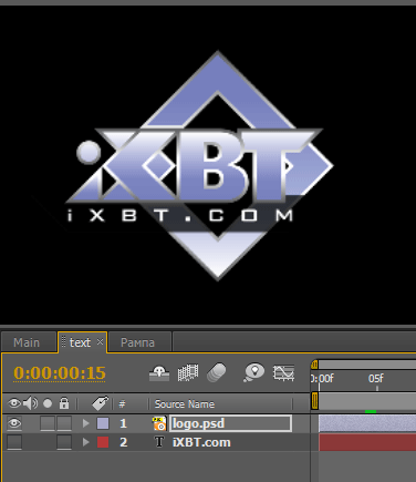 А теперь представим себе, что вам понадобилось повторить данный эффект, но уже с другим объектом в главной роли. Пусть это будет, к примеру, логотип. Импортировав рисунок в копилку программы, поместите его в секвенцию text, ту самую, где мы печатали наши улетающие титры. При этом следует отключить видимость прежних титров, а видимость логотипа, наоборот, включить.