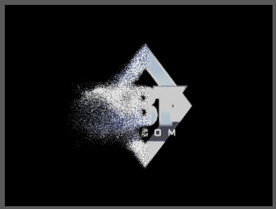 Поясним: изменением значений параметров Size X, Y, Z мы увеличили отображаемый размер текстового слоя. Увеличив же количество частиц в параметрах Particles in X, Y мы "уплотнили" этот текст, "забив" его частицами под завязку. Количество частиц по оси Z мы намеренно уменьшили до единицы, иначе с просчётом такого количества частиц не справится и суперкомпьютер. В результате этой работы получился вполне читаемый текст: