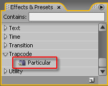 После установки, плагин поселится в разделе Effects&Presets в виде элемента списка папки Trapcode.