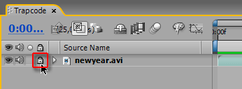 Самая первая операция, как всегда, — помещение обрабатываемого клипа на таймлинию. Для верности "придавим" его замком, чтобы случайно не сдвинуть или каким-то иным образом не повредить работе. Пусть он останется лишь фоном, на котором и будет производиться вся работа.
