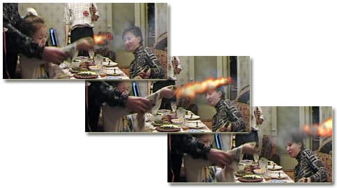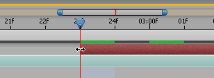 Напоследок не помешает прибавить дыма. Слишком он быстро исчезает, словно и не было громового выстрела с огнем и искрами. Создайте еще один слой, расположив его поверх всех существующих, и снова сдвиньте его левую границу к началу нашей сцены, но на этот раз отступите влево на один кадр, ведь дым не настолько энергично появляется и исчезает.