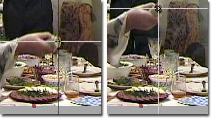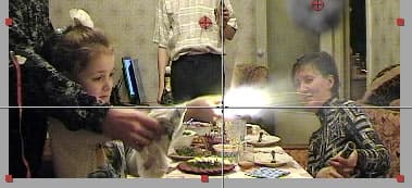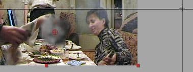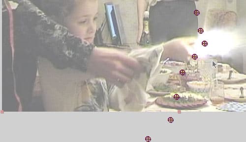 Всё, точка старта создана. Прокрутите ползунок времени на пять-десять кадров вперед, в настройках эффекта снова активируйте "прицел", нажав соответствующую кнопку (2), и щелкните далеко за пределами кадра, по тому месту, где, как вам кажется, должен к настоящему времени находиться вылетевший из хлопушки объект.