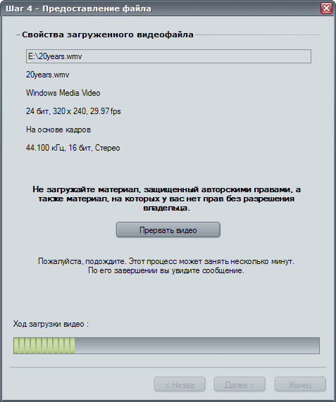Всё, наше видео уже на сервере YouTube.