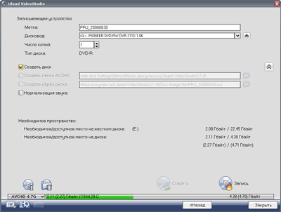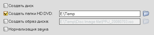 Авторинг таких дисков производится аналогично созданию Blu-ray дисков, с одной лишь разницей: если в первом случае мы могли создать образ диска (либо папку с файлами для последующего прожига в сторонней программе), то здесь выбора не предоставляется, пункты Создать папки AVCHD и Создать образ диска остаются неактивными. Прожиг — и точка!
