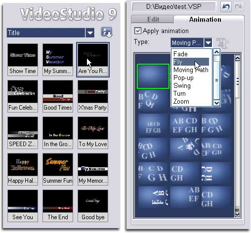 Прибавление случилось и в семействе титров. Если предыдущая версия программы была снабжена лишь одной заготовкой с названием "Are You Ready?", то теперь таких заготовок - 15, и каждую можно анимировать, используя встроенные в программу шаблоны анимации.