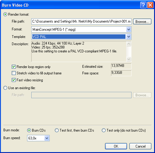 Как и подавляющее большинство современных видеомонтажек, Vegas Video 5.0 поддерживает непосредственный экспорт проекта на Video CD, для этого достаточно воспользоваться встроенным мастером «Burn Video CD».