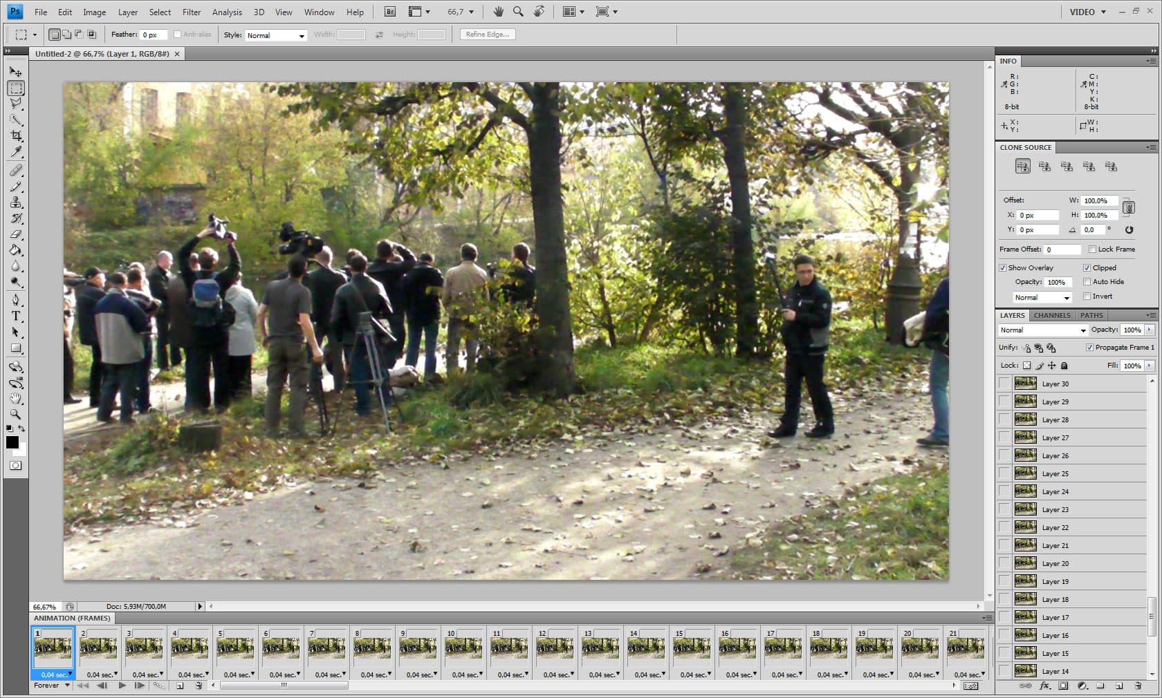 Но перейдём к практическим изысканиям — что же этакого позволяет сделать Photoshop с импортированным видео?