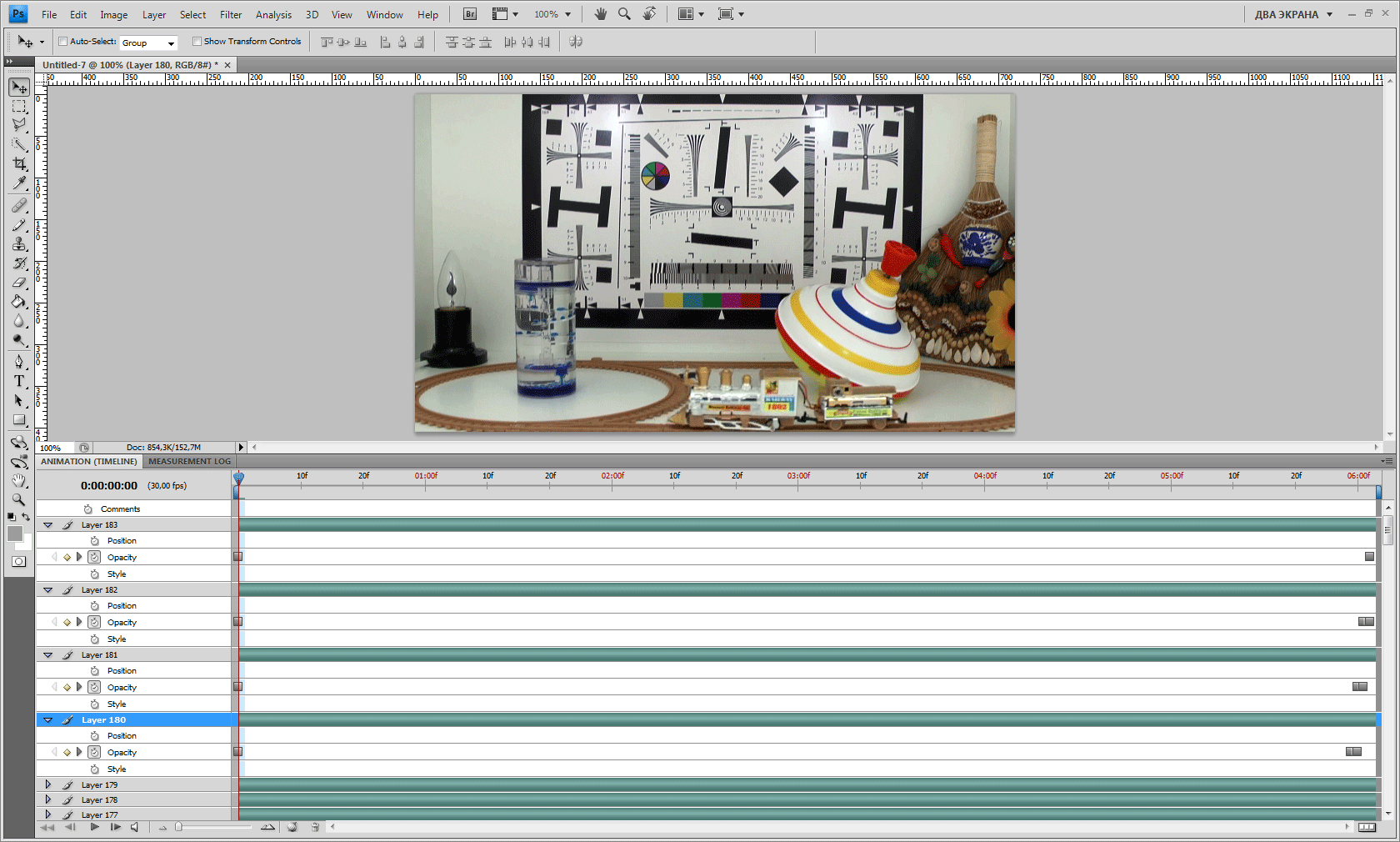 Открывшийся документ представляет собой этакую раскадровку, где один слой представляет собой один кадр видео.