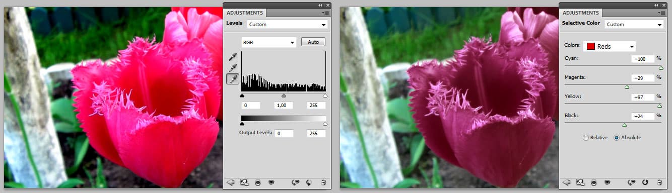 Помимо такого гибкого инструмента, как Levels, для точной подгонки каждого оттенка незаменимым является инструмент Selective Color (Layer -> New Adjustment Layer -> Selective Color).