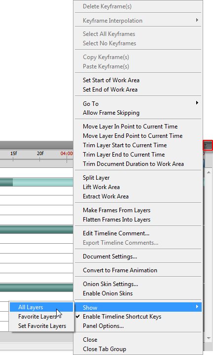 Нельзя забывать и о скрытых, невидимых глазу инструментах. Они спрятаны в выпадающем меню, которое появляется при нажатии на неприметную кнопку, расположенную в правом верхнем углу таймлинии.