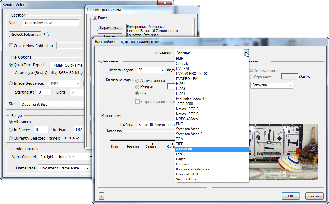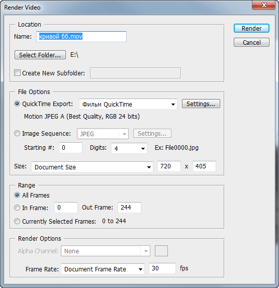 Но, скорее всего, вам быстро надоест мучаться с форматами, нехваткой оперативной памяти, схлопываниями и зависаниями программы. Идеальный выход здесь — перекодировать видео в MJPEG A с одновременной его упаковкой в контейнер QuickTime (MOV). И — лепота! Никаких тебе проблем: вне зависимости от размера кадра или продолжительности загруженного в программу видеоролика Photoshop просто летает!