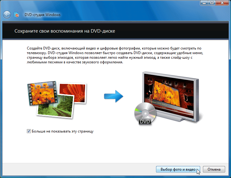 После утвердительного ответа запустится новый модуль, имеющий теперь постоянную прописку в операционной системе: DVD-студия Windows.