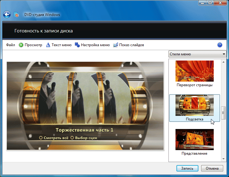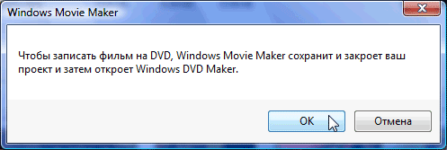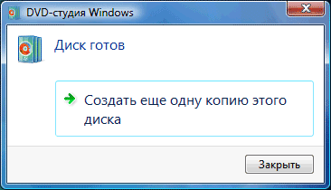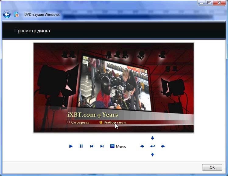 Если после такого просмотра пользователь остался доволен своим произведением, можно переходить к заключительному этапу: прожигу диска. К сожалению, DVD-студия Windows не создает файлов DVD на жестком диске компьютера, предлагая сразу записать их на оптический носитель.