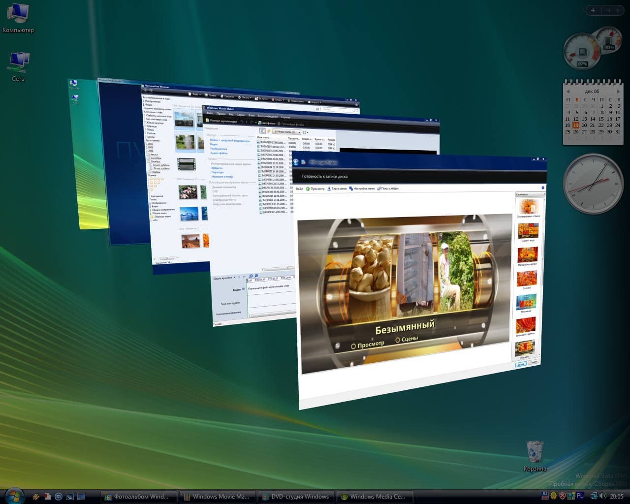 Итак, созданный DVD-видео готов пополнить вашу медиаколлекцию, просмотр которой теперь можно осуществлять с помощью встроенного в Windows Vista мощного средства — Media Center. Он значительно отличается от Windows XP Media Center Edition 2005, в Сети уже опубликованы их сравнительные обзоры, а мы пока ограничимся серией снимков экрана.