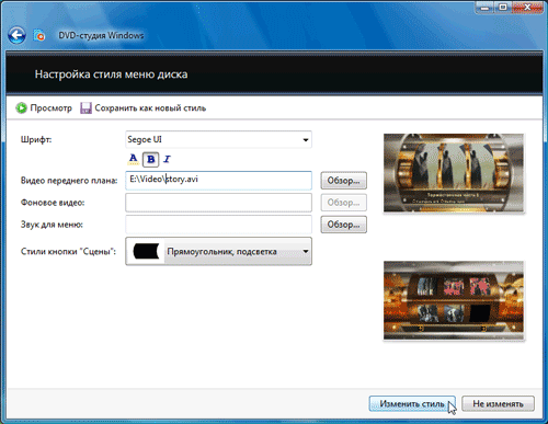 Темы можно изменить и самому, правда, не без известных ухищрений. Файлы, отвечающие за оформление DVD, располагаются в папке Program FilesMovie MakerSharedDvdStyles. Стоит их заменить своими — и никто не сможет укорить автора в использовании растиражированных на весь белый свет стандартных тем. Правда, для этого придется сильно постараться, ведь большинство меню представляют собой коллекции тщательно подогнанных заготовок, состоящих из графических и видеофайлов. Впрочем, можно надеяться, что в недалеком будущем в Сети появятся работы энтузиастов, которые помогут расширить оформительские способности DVD-студии Windows.