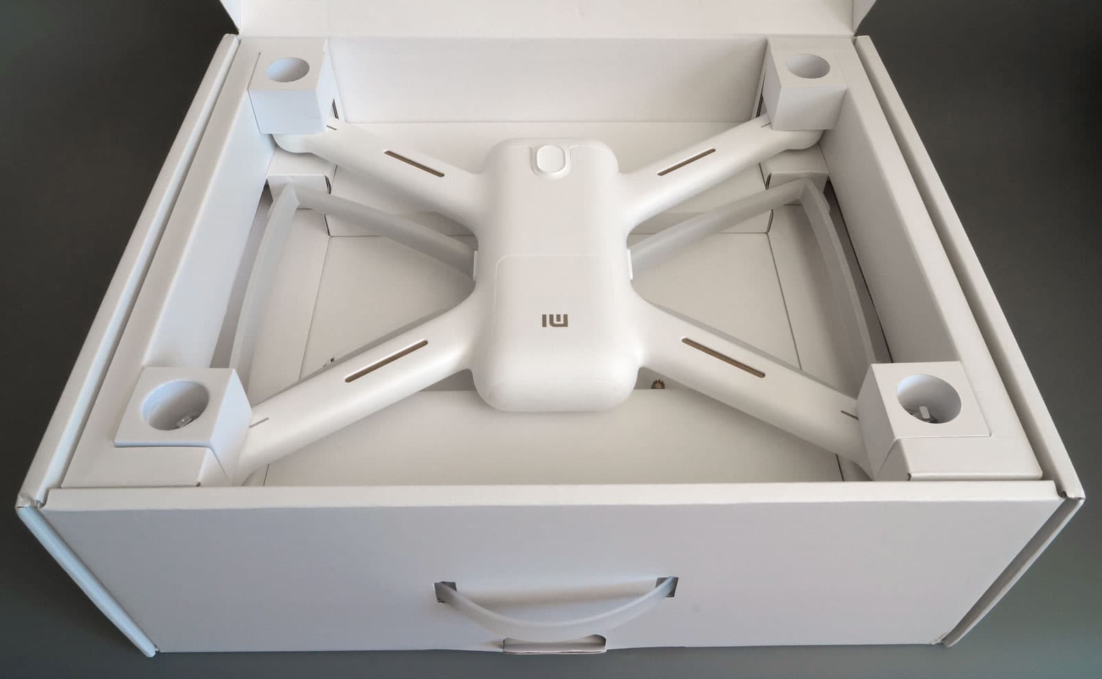 Камера поставляется в большой белой изящной коробке с умной конструкцией внутренних перегородок. Нет, наверное, поставляется все-таки квадрокоптер.