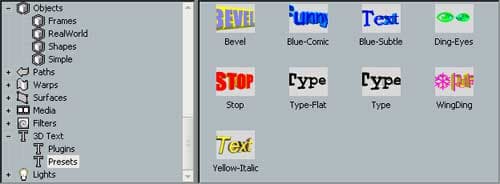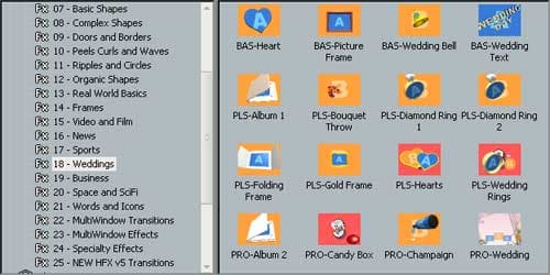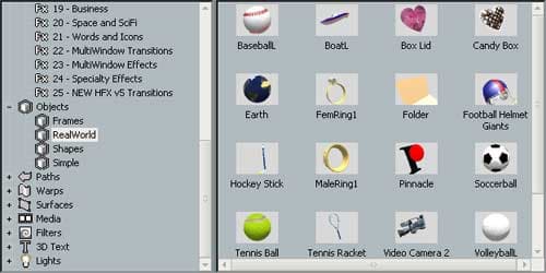 Присутствуют также 8 групп отдельных объектов, таких как свет, 3D модели и всевозможные фильтры, которыми можно дополнять «сцены» готовых переходов. Кстати, программа позволяет импортировать 3D объекты, созданные в Lightwave.