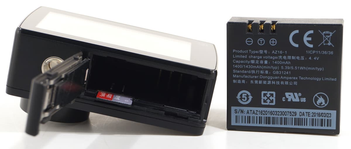 Прилагаемый аккумулятор с высокой емкостью 1400 мА·ч позволяет вести беспрерывную видеозапись в течение 110 минут в самом «старшем» формате 3840×2160 30p с выключенным Wi-Fi.