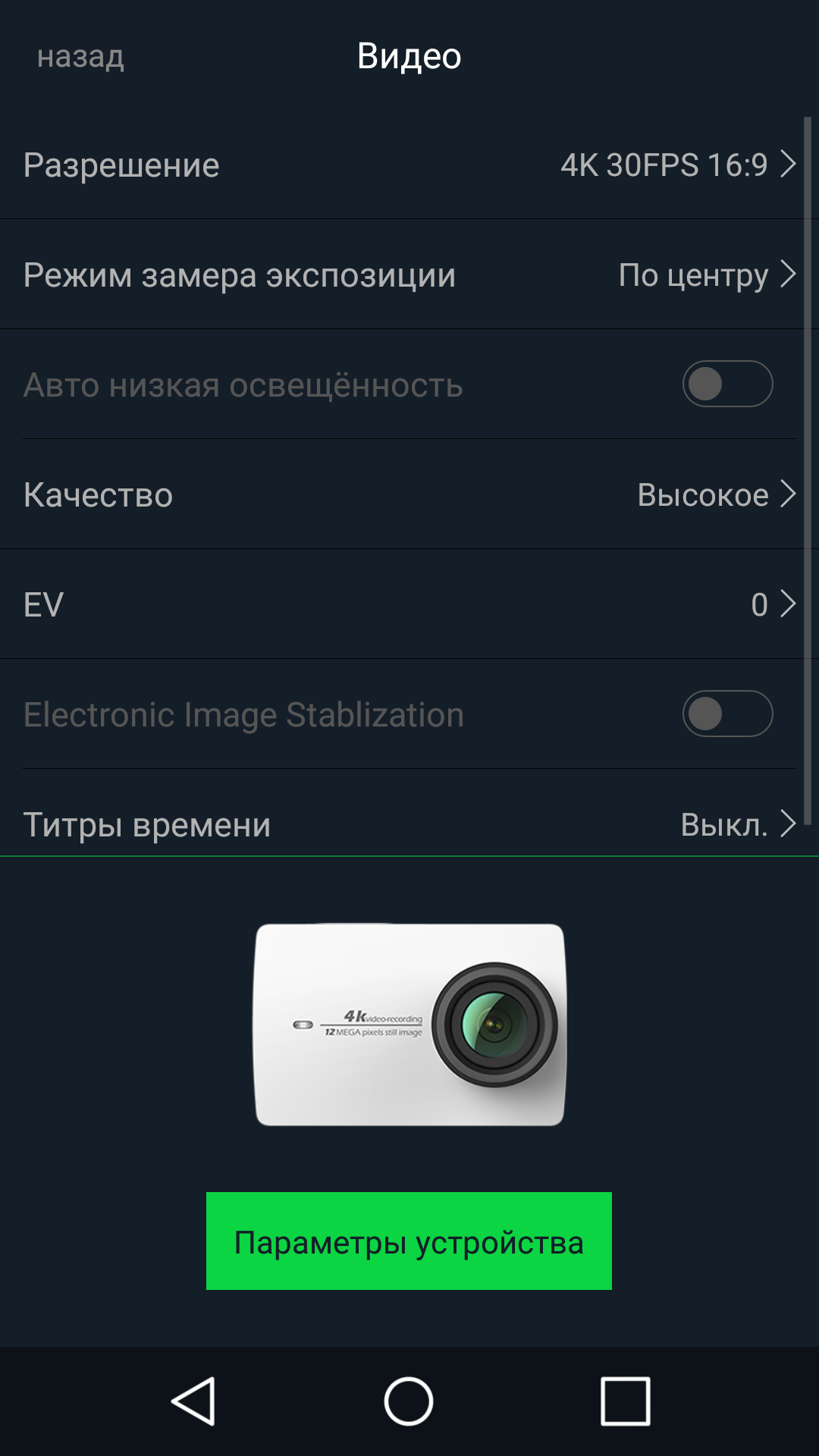 Мобильное приложение, которое потребуется установить, называется Yi Action. Продуманное, удобное, быстрое и не «падающее». Правда, локализация временами чуть хромает (например, «Сдаваться» вместо «Отмена» или «Доля» вместо «Поделиться»), но на это вряд ли будешь обращать внимание.