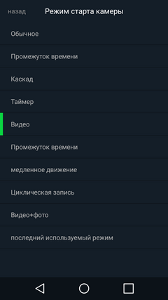 | Расширенные настройки | Выбор режима переворота картинки | Выбор режима съемки по умолчанию |