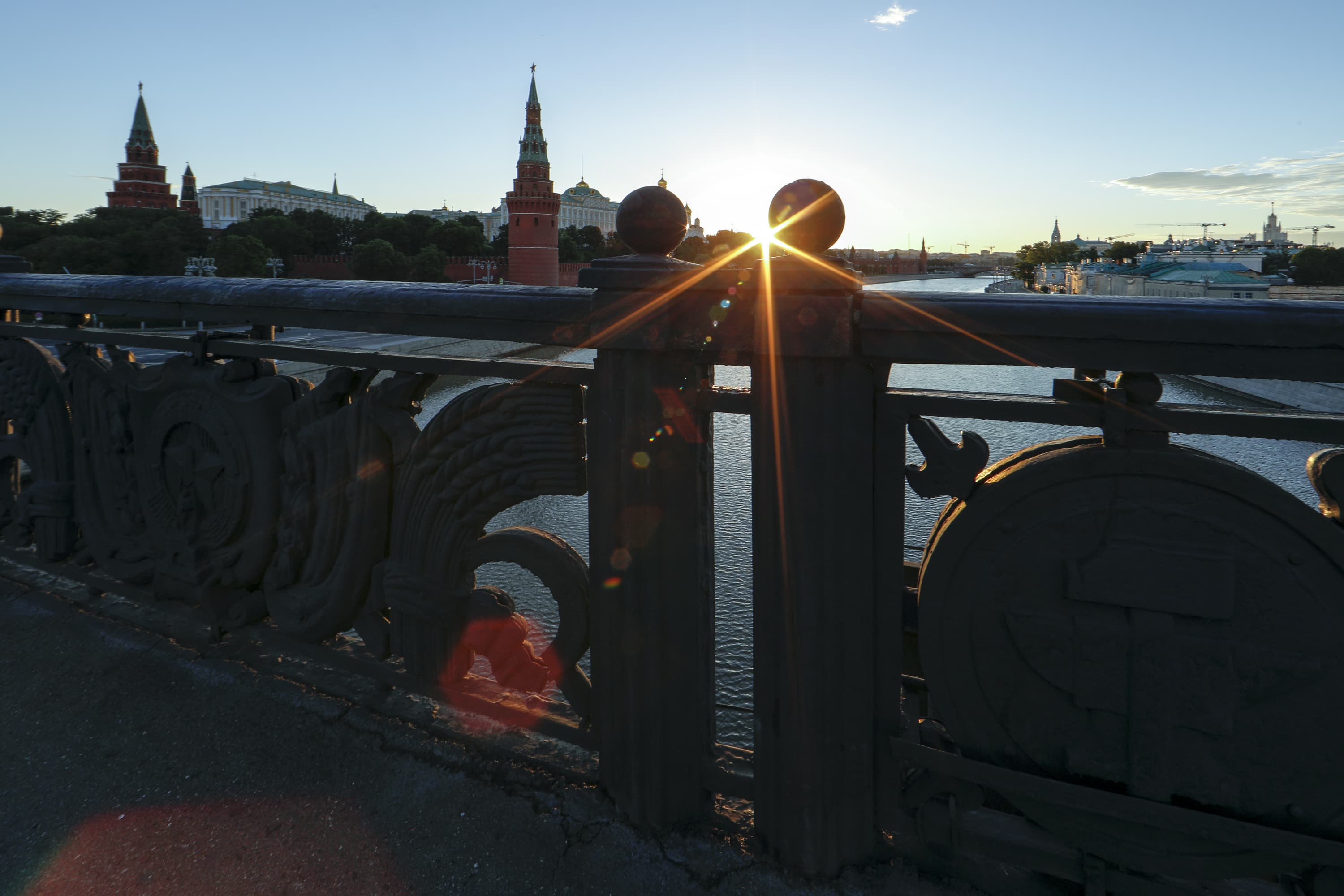 Вот что происходит, например, при съемке утреннего солнца при его низком стоянии над горизонтом. Два фото ниже сделаны на Большом Каменном мосту с видом на Московский Кремль.