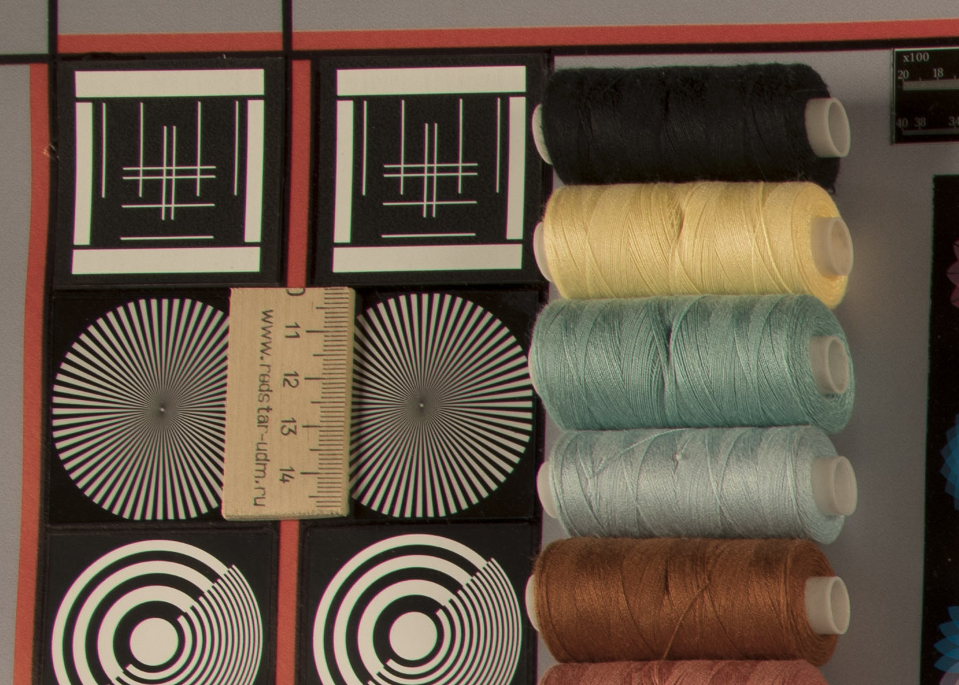 Прикрываем на том же фокусном диафрагму до f/9 — и все характеристики стали весьма однородными, без больших различий между центром кадра и периферией. Виньетирование перестало наблюдаться, хроматика снизилась до крайне незначительной, резкость на глаз практически одинаковая по полю.