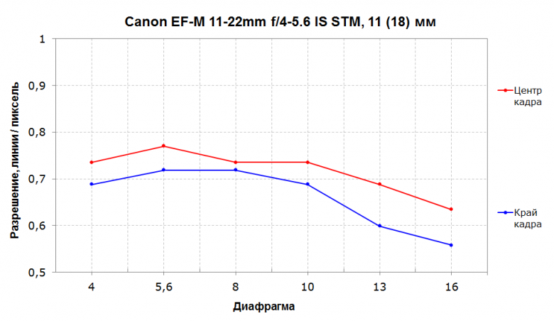 Для выявления разрешающей способности объектива и теста стабилизирующей системы мы отправили объектив в лабораторию. Проверка разрешения проводилась на фокусных расстояниях 11, 18 и 22 мм.