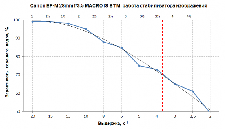 В лабораторных условиях стабилизатор изображения показал отличный результат: более 3⅔ ступеней компенсации экспозиции. Остается только проверить цифры на практике.
