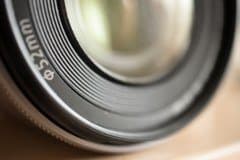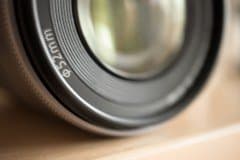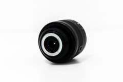 Дополнительно стоит отметить скошенный профиль у объектива около передней линзы, что облегчает фокусировку на сверхмалых дистанциях — объектив можно буквально упереть в поверхность под углом в 53 градуса. Очень интересная конструкция, единственный минус которой — пластиковый корпус, характерный для всей серии.