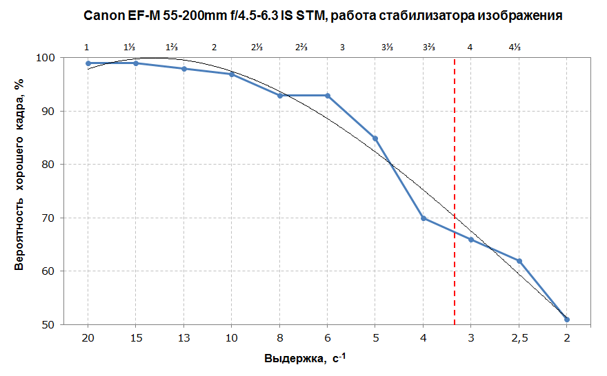 В результате лабораторных исследований мы установили выполнение объективом своих «обязательств» по стабилизации изображения даже с некоторым запасом, вплотную приблизившись к 4 ступеням компенсации экспозиции.