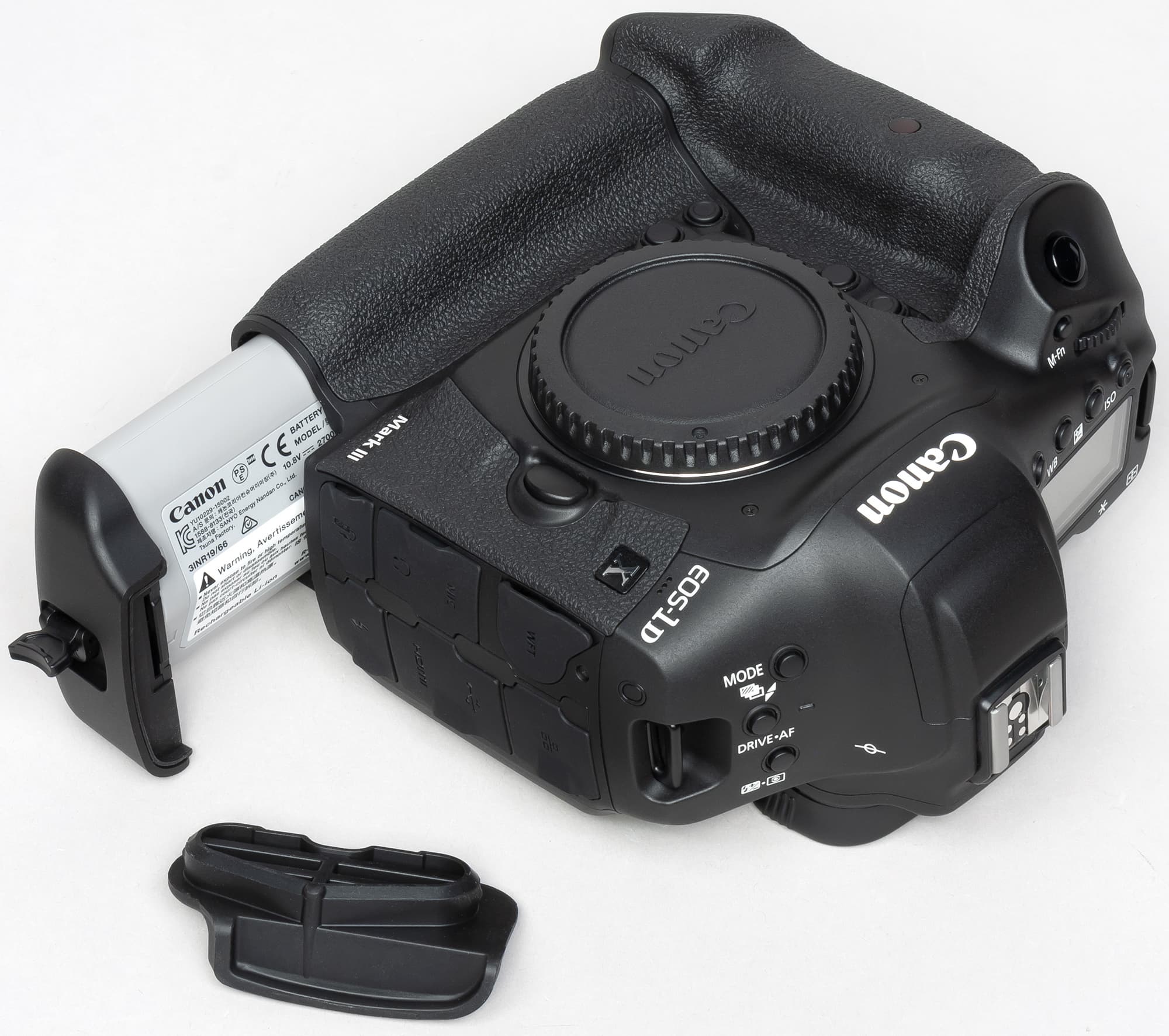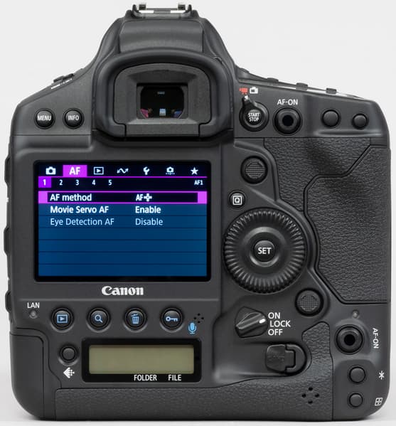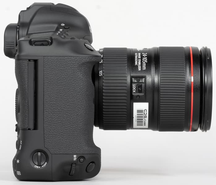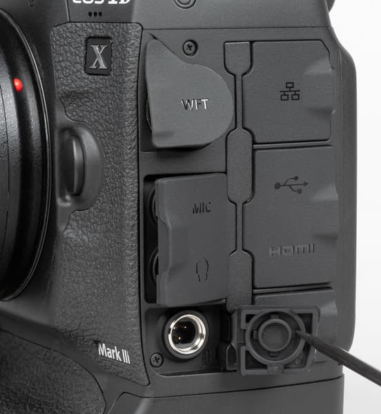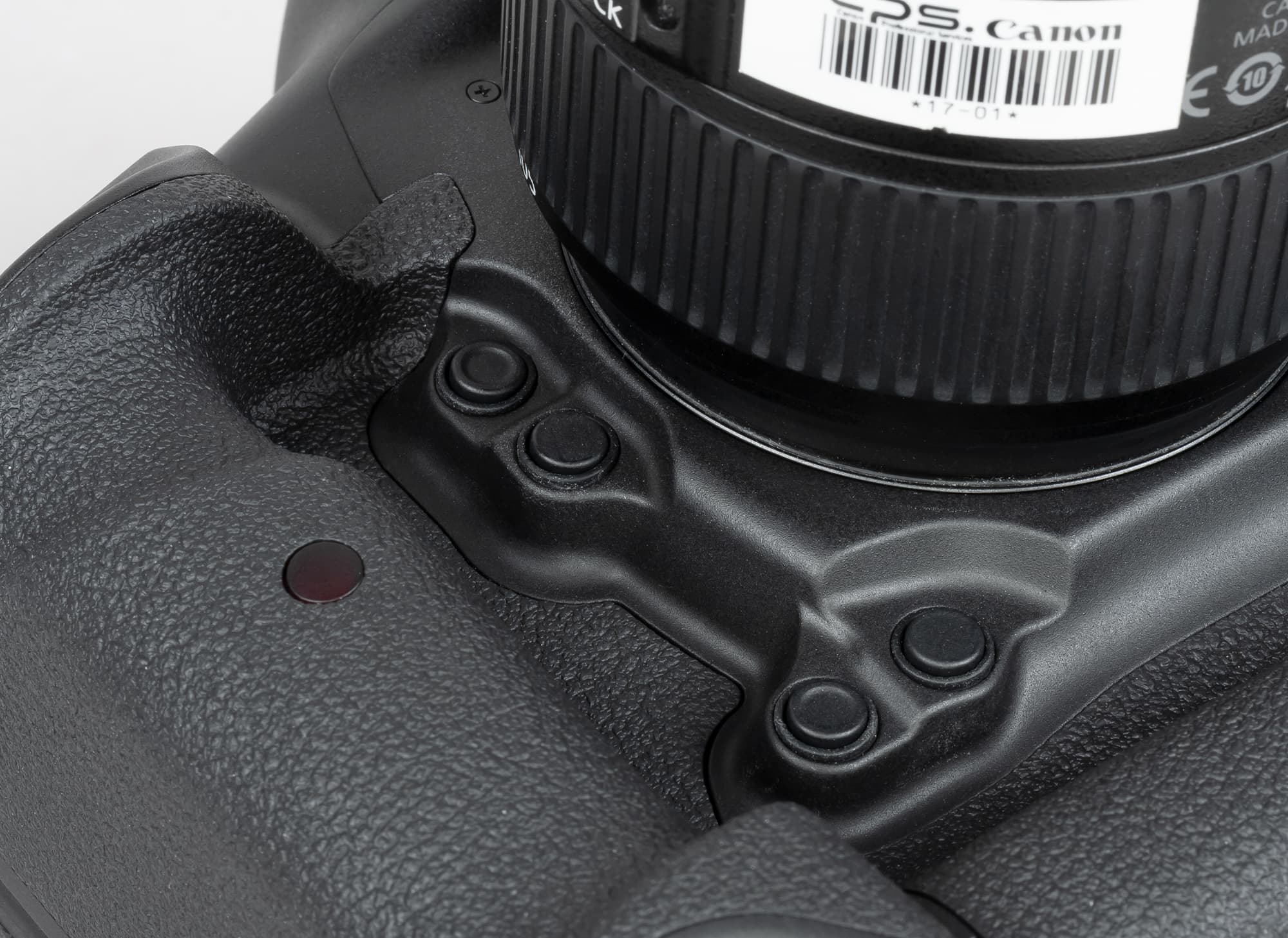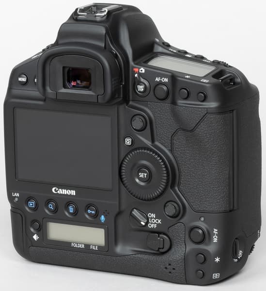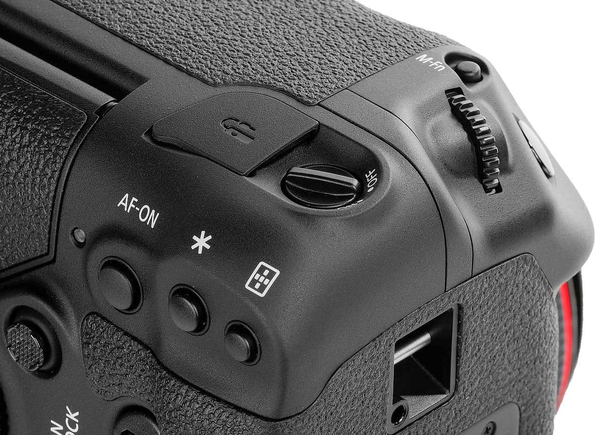 Canon EOS-1D X Mark III отличается отлично продуманной конструкцией и эргономически рациональными решениями. Обе ручки на корпусе (горизонтальная и вертикальная) хорошо ложатся в правую руку. Селекторы и колёса выбора параметров находятся в местах, до которых легко дотянуться пальцами этой руки.