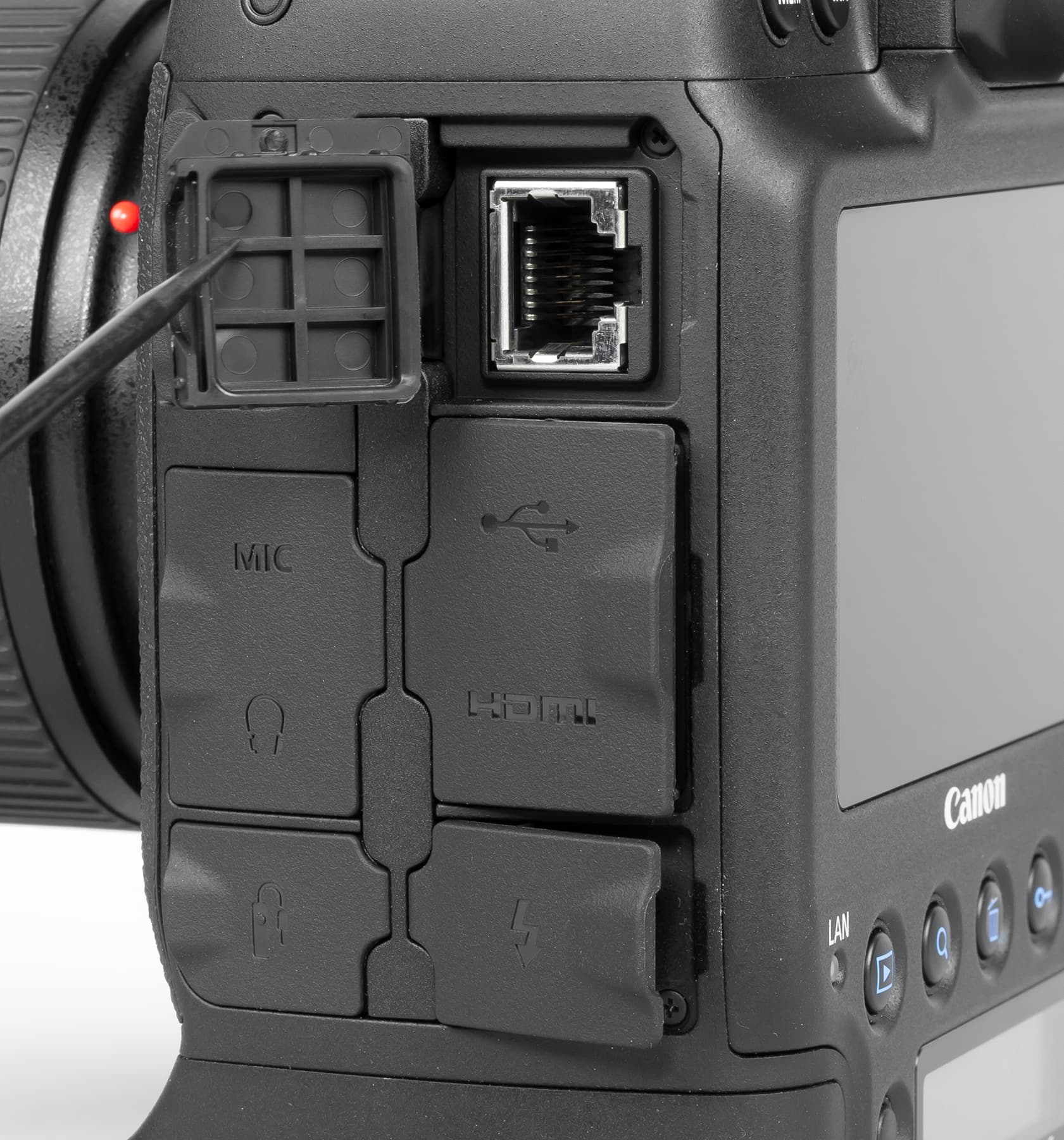 Отсек для карт памяти имеет собственную крышку, которая в закрытом положении фиксируется специальным замком на корпусе камеры.