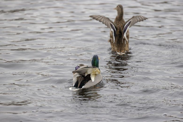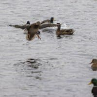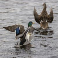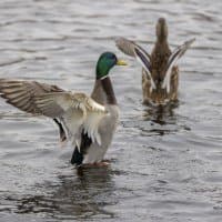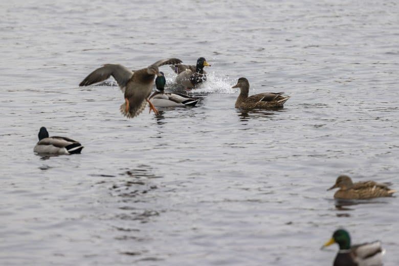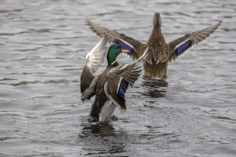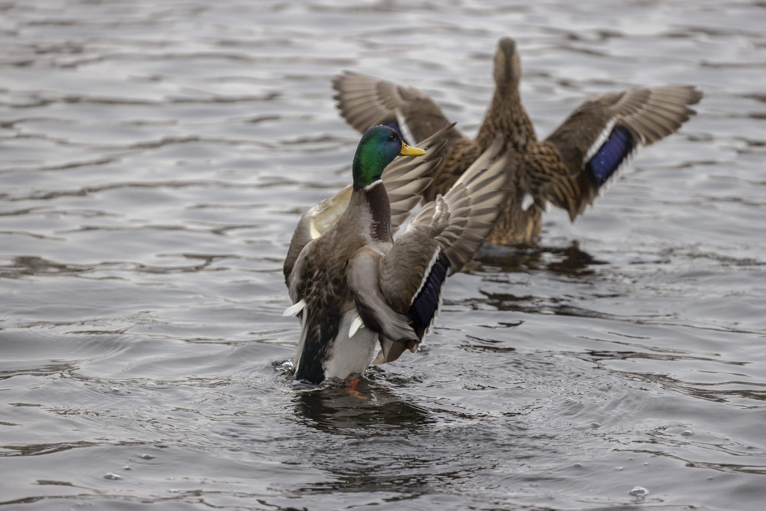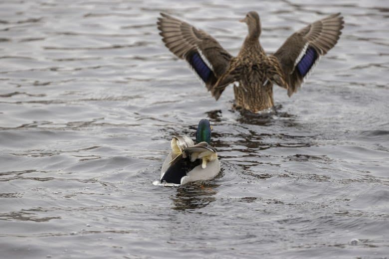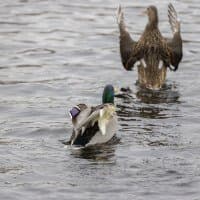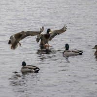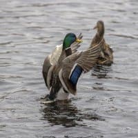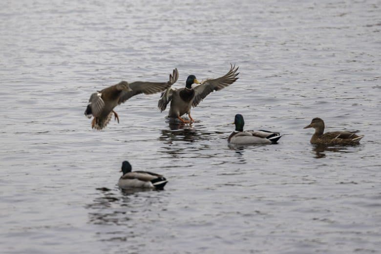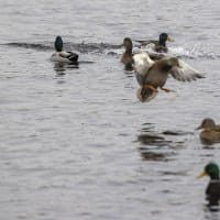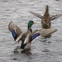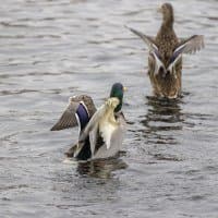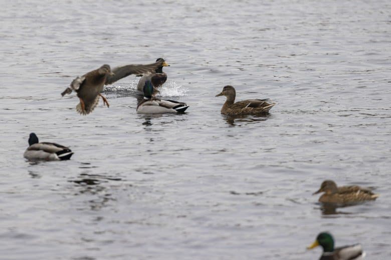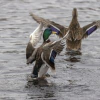 Теперь следует усложнить задачу, поставленную автоматике. На снимках ниже запечатлен процесс посадки на воду утки (ближе к нам) и селезня (дальше от нас). Сфокусируемся на селезне и посмотрим, не ошибается ли автофокус, переключившись на утку, которая летит ближе к камере и почти перекрывает селезня в поле зрения объектива. Фокусное расстояние 400 мм; F6,3; 1/1600 c; ISO 500. 9 кадров.