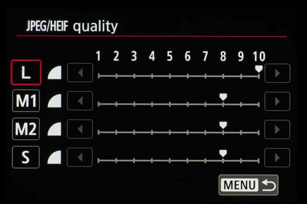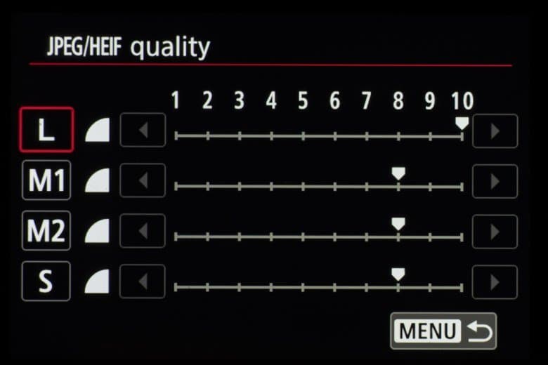 | Формат записи фотоснимков | JPEG: 10 видов сжатия; HEIF: 10 видов сжатия (10 бит, 4:2:2, BT2100); RAW: без сжатия ((14-битный Canon RAW версии 2)и со сжатием (C-RAW); совместимость с Exif 2.31 и Design rule for Camera File system 2.0; совместимость с цифровым форматом управления печатью [DPOF] версии 1.1 |