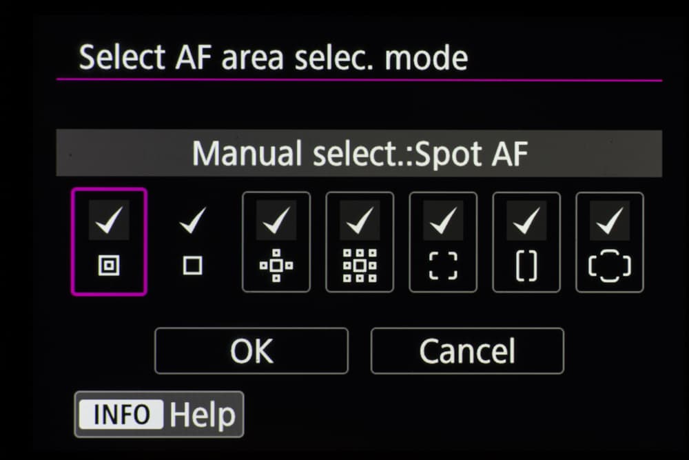 - автофокусировка в режиме Live View использует технологию Dual Pixel CMOS AF с покрытием 100% кадра по вертикали и 90% по горизонтали
