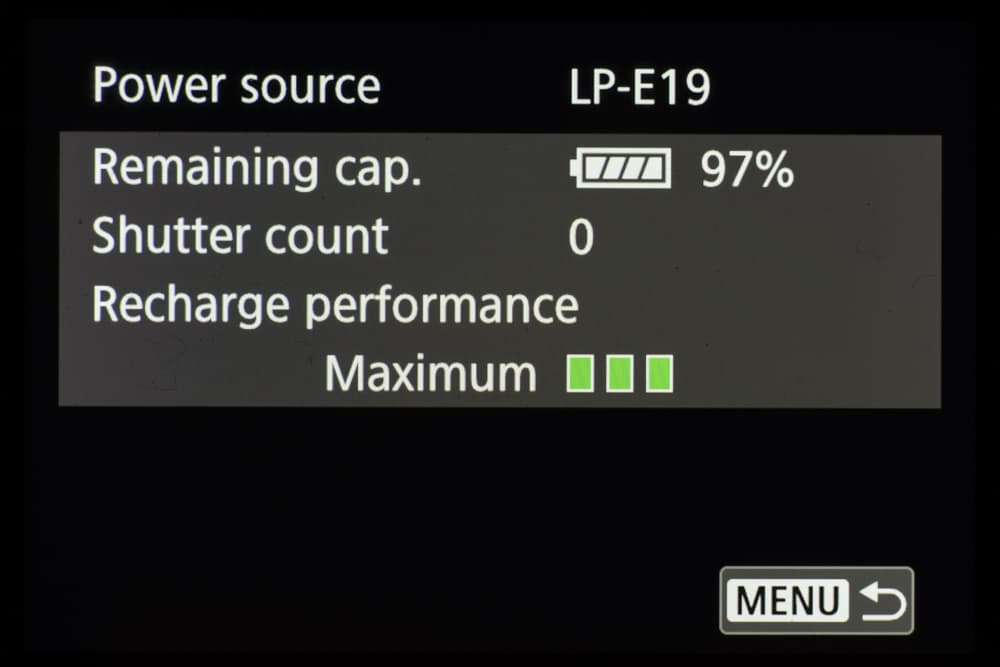 | Батарея | литий-ионный аккумулятор LP-E19; 2850 кадров при 20 °C или 2360 кадров при 0 °C |