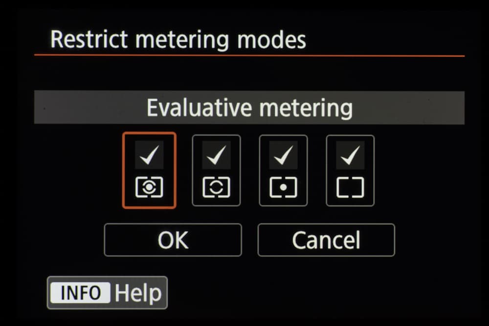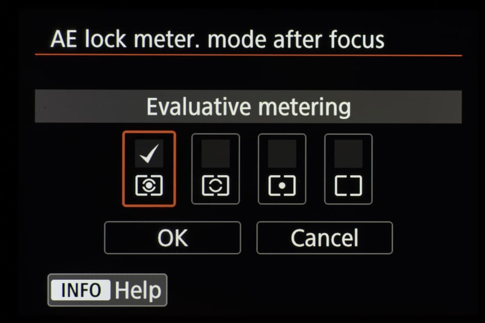 | Режимы экспозамера | видоискатель: оценочный (связан со всеми точками АФ), частичный (≈6,2% площади), точечный (≈1,5% площади), центрально-взвешенный, многоточечный, замер по точке АФ; Live View: оценочный (384 точки АФ), частичный (≈5,8% площади), точечный (≈2,9% площади), центрально-взвешенный |