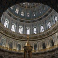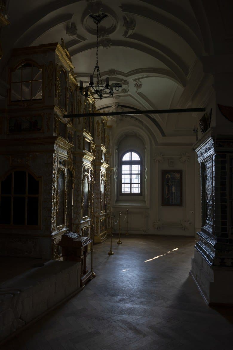 Для выяснения переносимости высоких значений эквивалентной светочувствительности мы предприняли съемку интерьера московской библиотеки имени Максимилиана Волошина. Камера Canon EOS-1D X Mark III с объективом Canon EF 24-105mm f/4L IS II USM закреплена на штативе, установлено фокусное расстояние 100 мм, диафрагма F4, ISO 100. В первом (исходном) кадре автоматика подобрала выдержку 1/5 с. Теперь начнем повышать ISO на одну ступень от кадра к кадру при неизменном значении диафрагмы. Выдержка, естественно, будет укорачиваться соответственно.