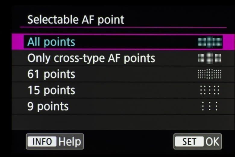 | Выбор зоны АФ | автоматический выбор: 191-точечная автофокусировка (с детекцией лиц); ручной выбор: точечная АФ с 191, 61, 15, 9 точек либо только точек крестообразного типа); настройка зоны: точечная, расширение по 4 или 8 точкам (вверх, вниз, влево, вправо), зональная, большая зона |