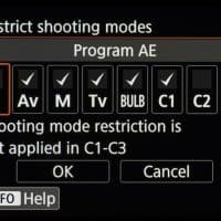 | Съемочные режимы | программный (P), приоритет выдержки (Tv), приоритет диафрагмы (Av), ручной (M); Bulb (B), три пользовательских |