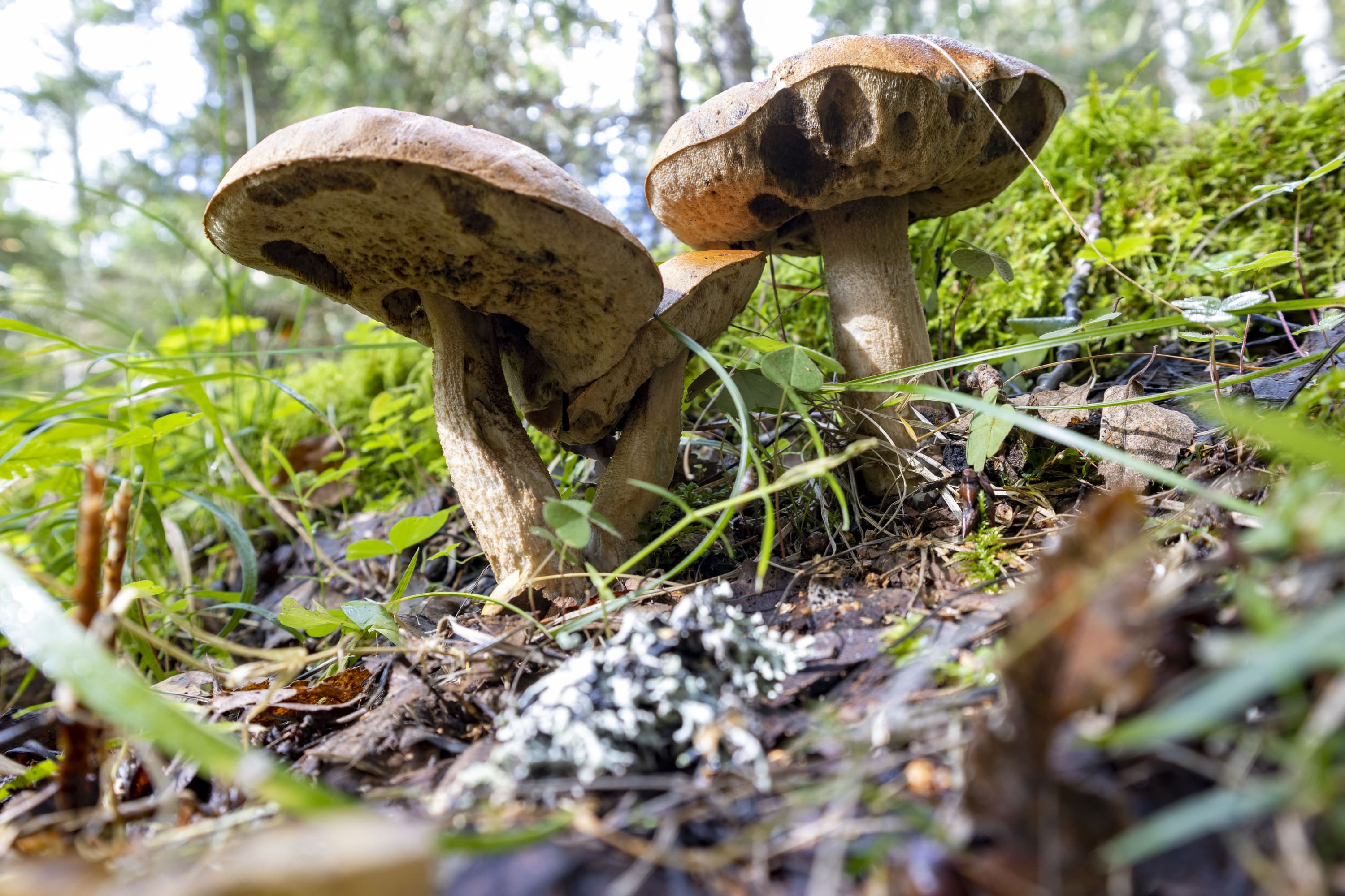 На снимке, приведенном выше, хорошо различимы не только пластинки шляпки гриба, не только ветки и травинки, но даже ворсинки на краях листьев клевера (справа).