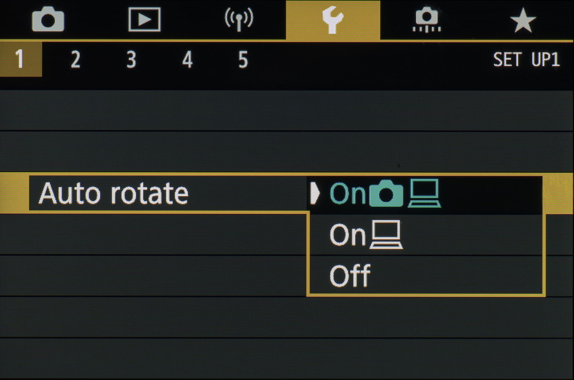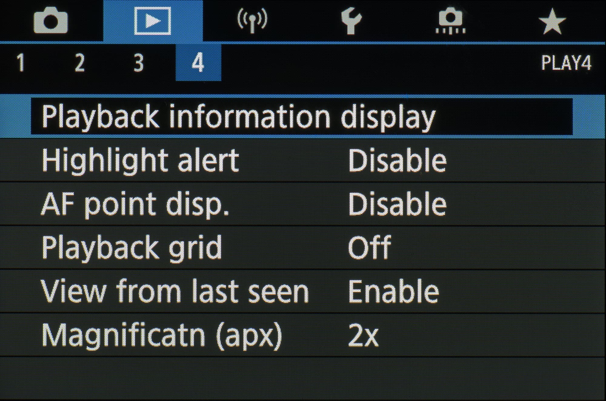 Сзади помимо основного дисплея имеются рычажок переключения режимов фокусировки, кнопки экспопамяти, выбора точки автофокусировки, вызова основных параметров съемки, активации записи видео, просмотра отснятого материала и меню. Имеется пятипозиционный селектор, все пять позиций которого отвечают за отдельные функции — экспокомпенсацию, режим работы вспышки, стирание отснятого материала и режим «протяжки».