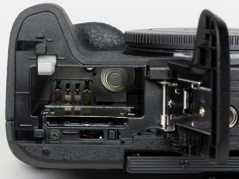 Отсек для батареи и карты памяти конструктивно объединены в одном блоке.