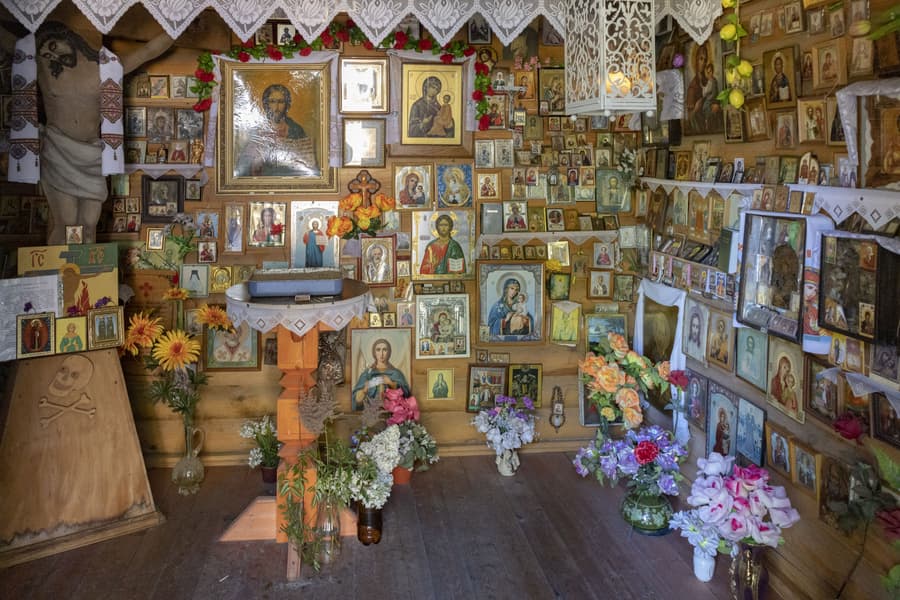 В условиях нехватки освещения детализация страдает из-за шумовых артефактов, неизбежно выявляющихся при увеличении эквивалентной светочувствительности. Это заметно на снимке часовни, в которую снаружи проникает слишком мало света.