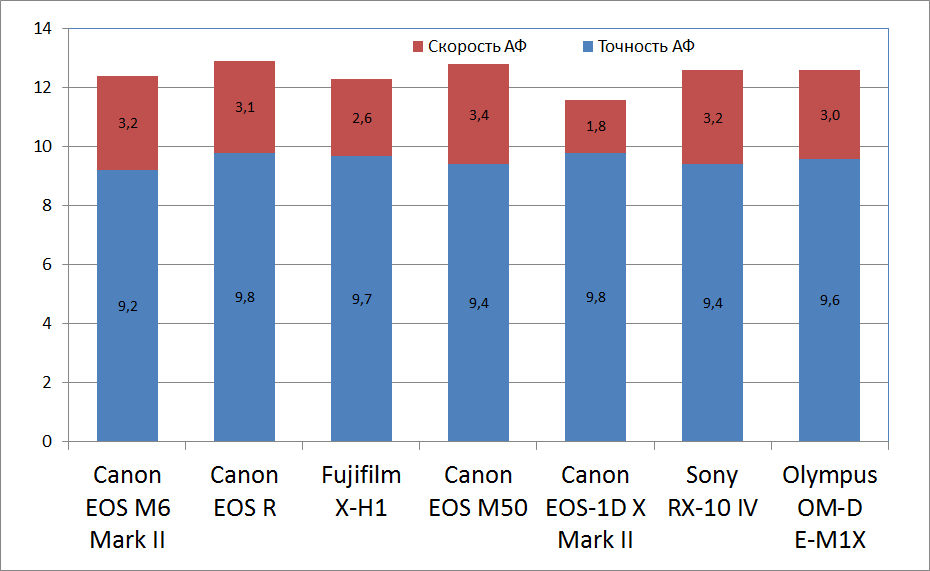 По точности автофокуса камера по какой-то причине не дотягивает даже до уровня EOS M50. Скорость работы автоматической фокусировки остается на уровне топовых камер, но в сравнении с тем же Canon EOS M50 оставляет желать лучшего. И в целом обидно, что общий рейтинг у нашей героини чуть ниже, чем у современных полнокадровых беззеркалок.