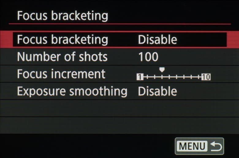 - брэкетинг автофокуса (съемка серии кадров со смещением точки фокусировки)
