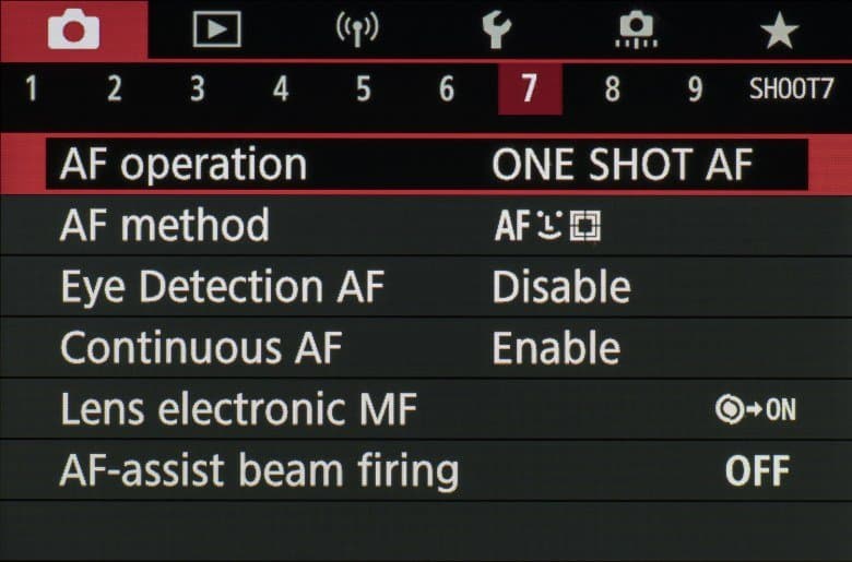 Даже краткое описание позиций в меню нашей подопечной чрезмерно отяготило бы этот обзор, и к тому же нам вовсе не хочется переписывать руководство по эксплуатации Canon EOS M6 Mark II. Поэтому мы ограничимся максимально многочисленными (хотя и не исчерпывающими) скриншотами, которые помогут составить представление о содержимом меню.